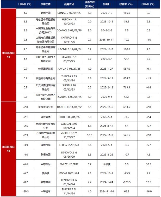 中资美元债每日价格变动(截至1月9日收盘)