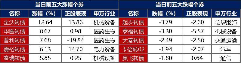 【转债市场主要指数集体收涨】 1月9日,转债市场有所反弹,当日中证转债、上证转债、深证转债分别收涨0.24%、0.15%、0.40%。当日,转债市场成交额479.27亿元,较前一交易日缩量6.43亿元。转债市场个券多数上涨,505支转债中,367支上涨,131支下跌,7支持平。当日上涨个券中,金沃转债涨超12%,新上市华医转债涨超8%,普利转债涨超7%;下跌个券中,起步转债、泰福转债跌逾3%,大秦转债跌逾2%。